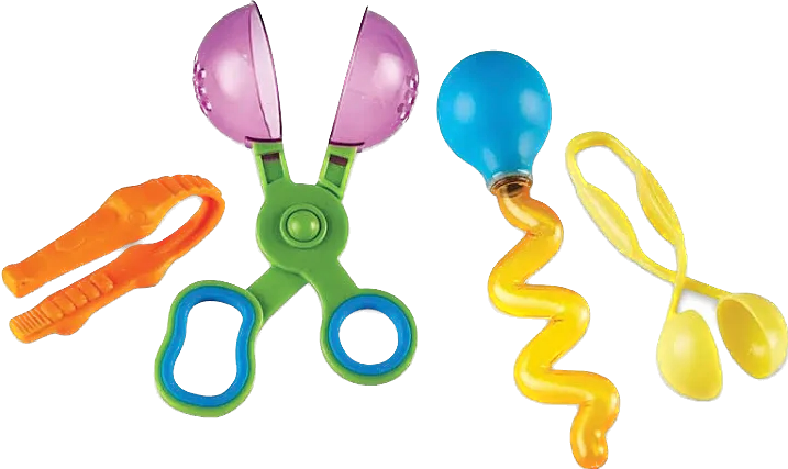 Tweezers, Tongs, Droppers, and Scoopers made for little hands provide opportunity for early hand strength and grasp. These tools can be used to work on dynamic tasks while engaging in gross motor movement activities to combine a full body workout for coordination, balance, and strength. Imagine maintaining cotton balls inside the scoop while navigating a mini ninja warrior obstacle course.