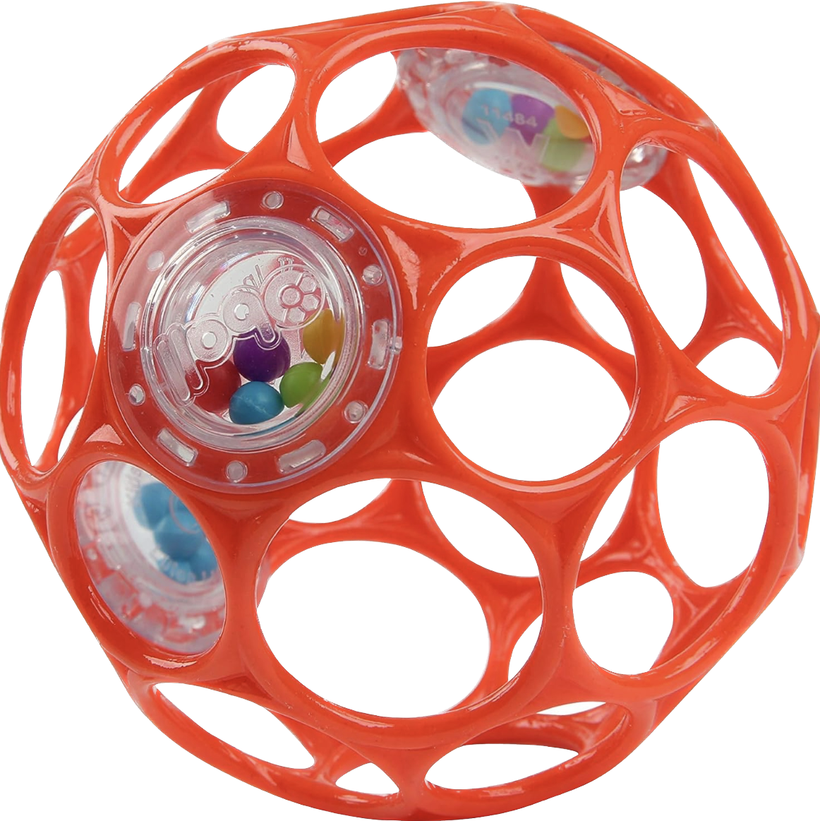 Rattles and Teether Toys are great toys for babies to grasp, reach, and shake in the first few months of life. They can be used for play on the belly, back, and sitting. These light weight toys can be brought to midline and manipulated with both hands. Contrasting colors and sound encourage visual tracking and turning the head left and right to work on head control when moved in various directions by therapist or caregiver. Rattles provide vibration, giving feedback and awareness to baby’s body when shaken. Vibration helps kids who crave oral input or need extra input bring awareness to the lips and oral muscles. This helps reduce drooling, make early developing sounds, and increase verbal output.