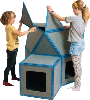 Speech therapist often build forts, boats, and rockets in their sessions. We’ve attached a dry erase board on a couple of our pieces for writing, keeping score, or drawing. Our kids use these tiles as tunnels, soccer goals, or barriers in obstacle courses or games.
