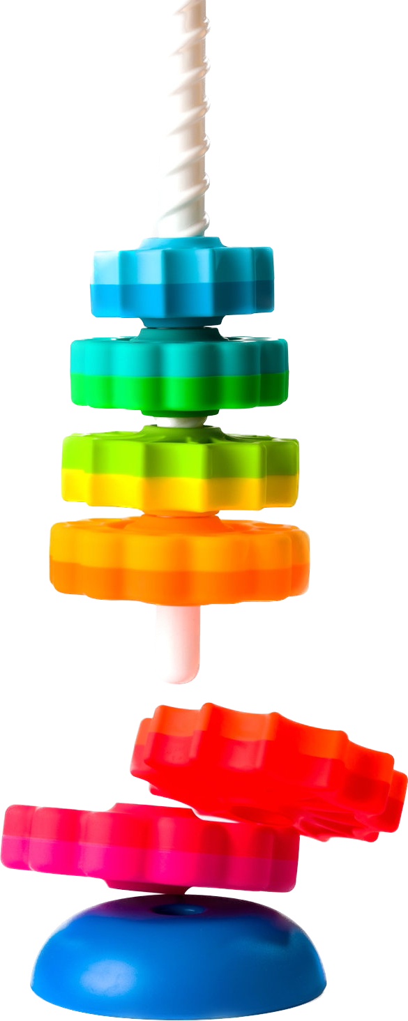 Cause and Effect Toys like this pop up toy and spin again teach babies the concept that an action creates a reaction. The buttons, knobs, and switches practices early grasp and coordination and provides tactile input when manipulated. They can be used to encourage tummy time or sitting balance due to their height and size.